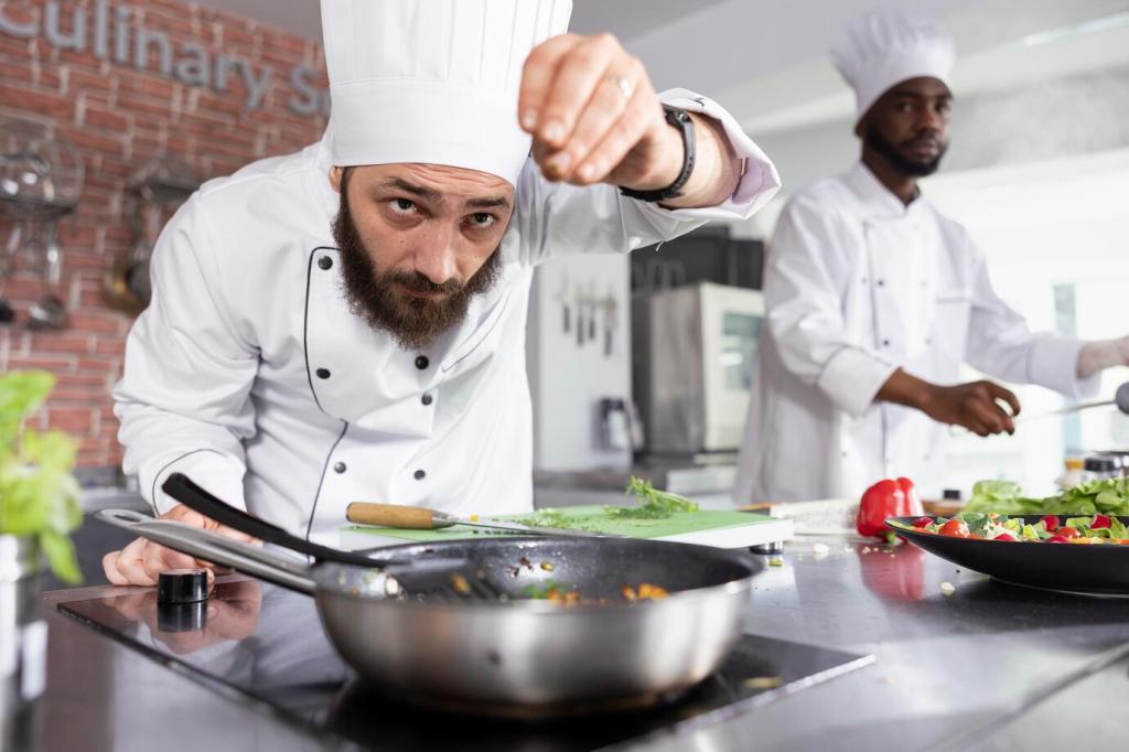 Zwölf- bis neunzigsekündige Clips, die eine Technik wirklich erklären, schlagen perfekte Money-Shots. Slow-Mo beim Zwiebelnwürfeln, klare Mengenangaben im Overlay, ehrliche Fehler. Speichere das Videoformat, das dir beim Lernen am meisten hilft, und sag uns warum!